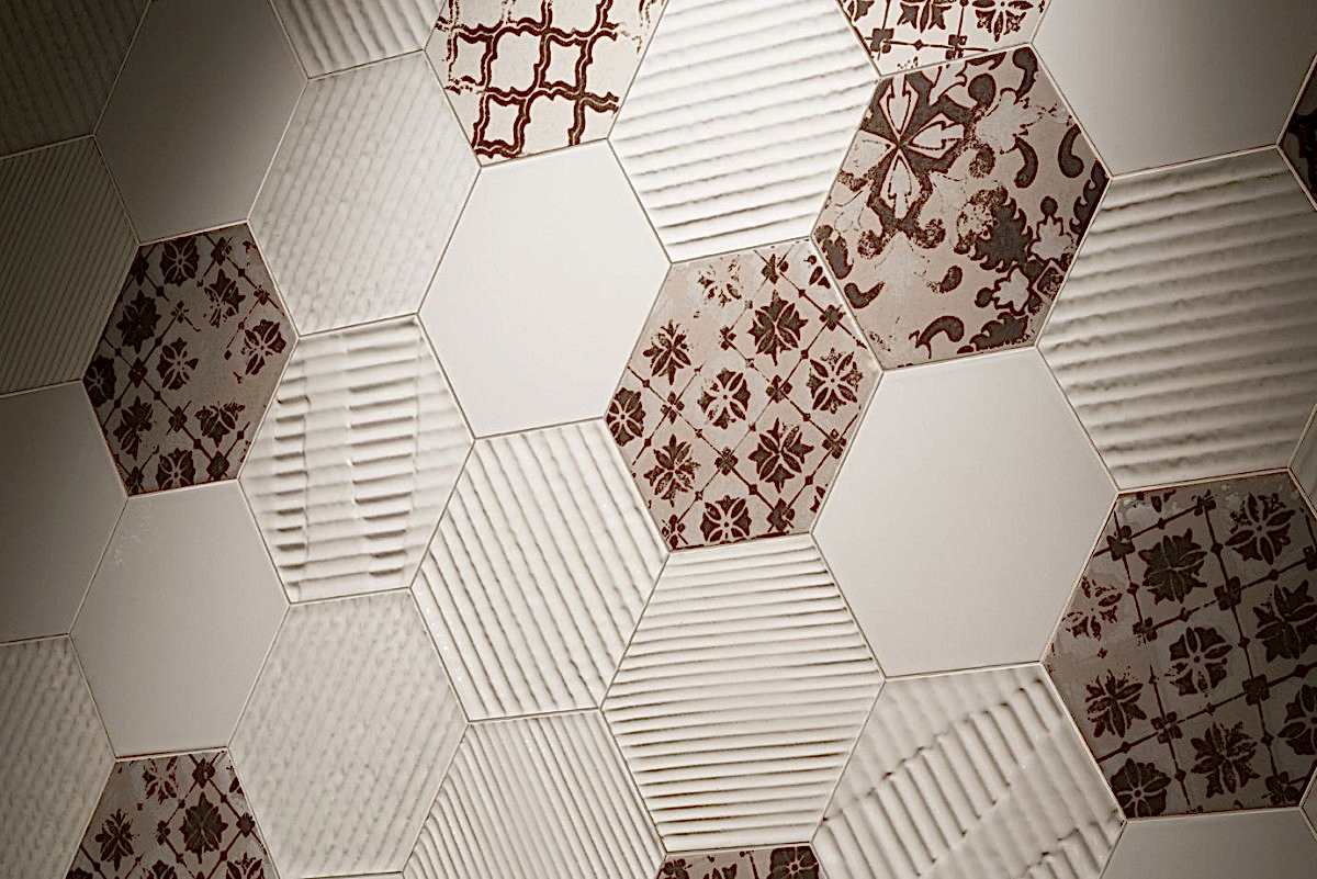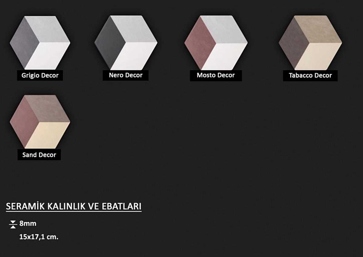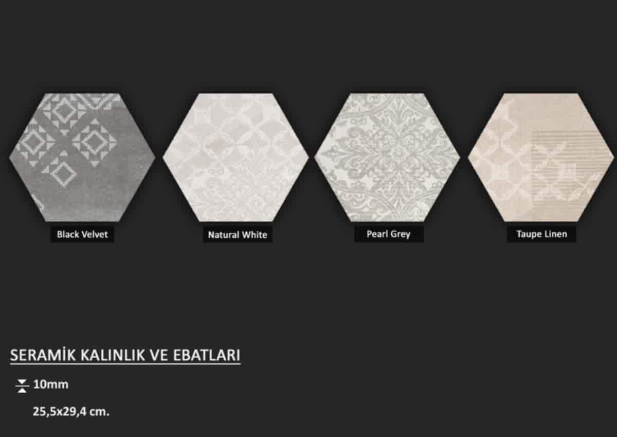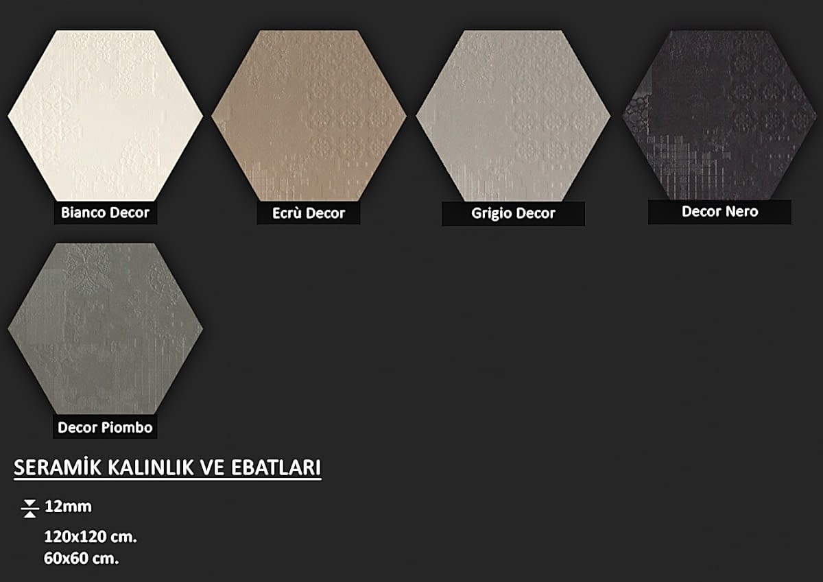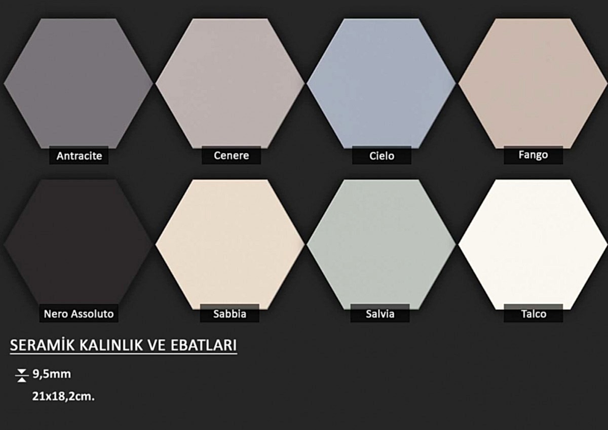 Altıgen formlu fon veya dekorlu İtalyan seramikler... Ebat seçenekleri için görsellere tıklayınız.