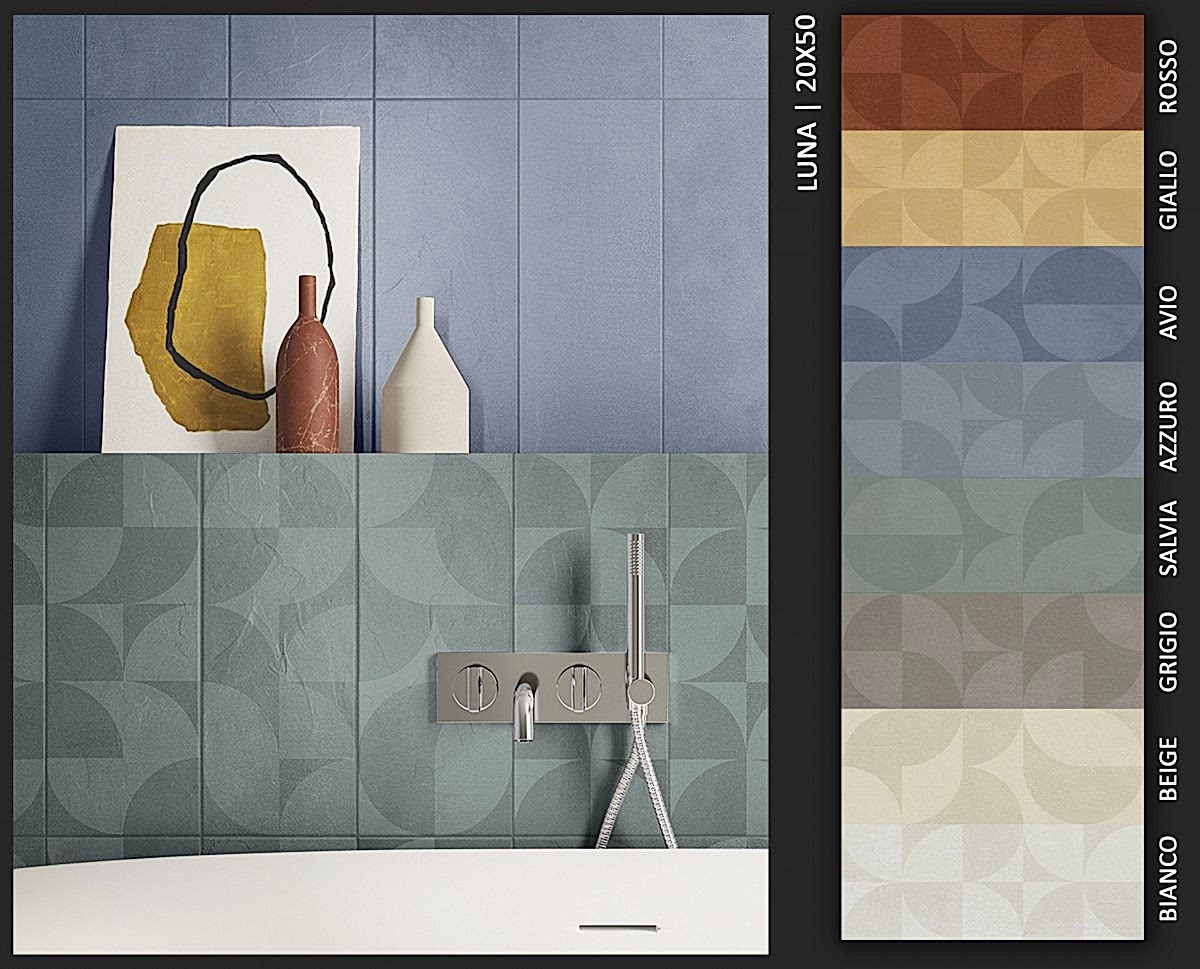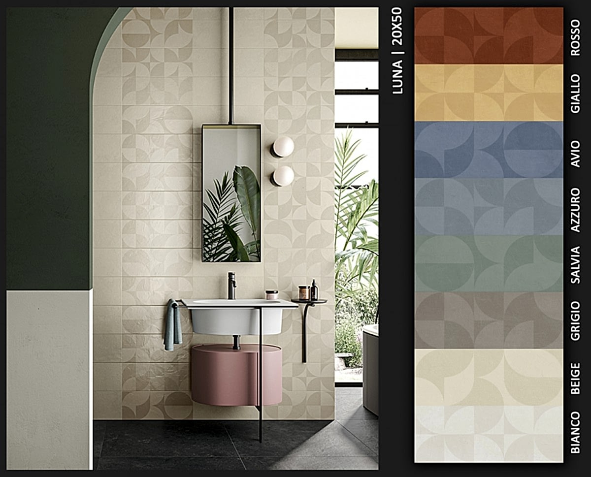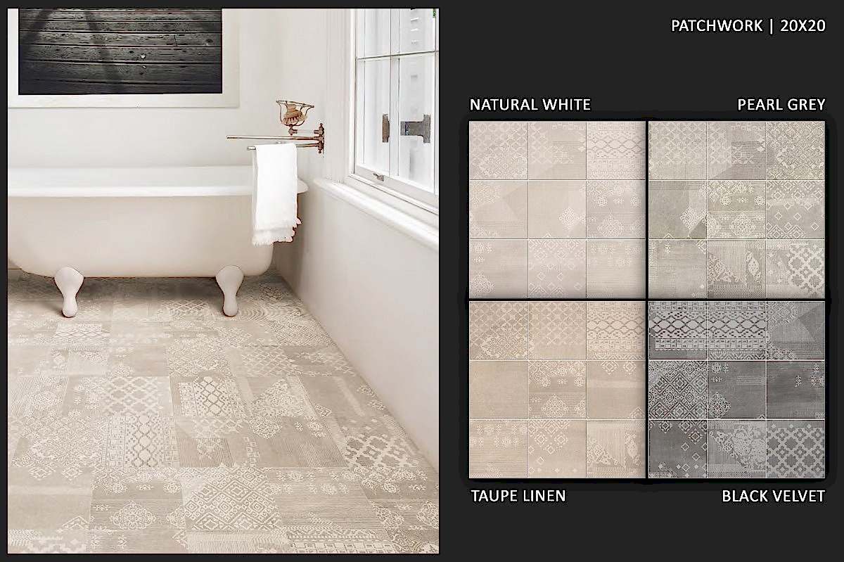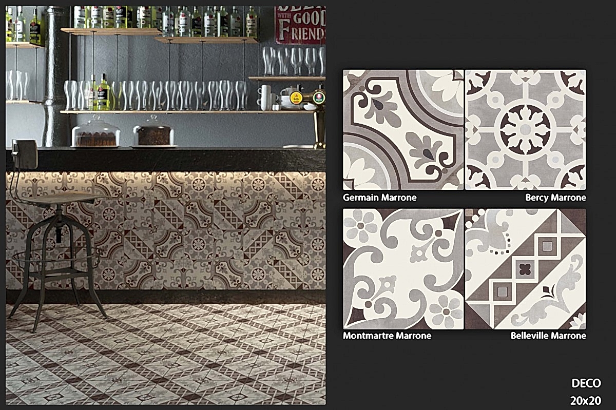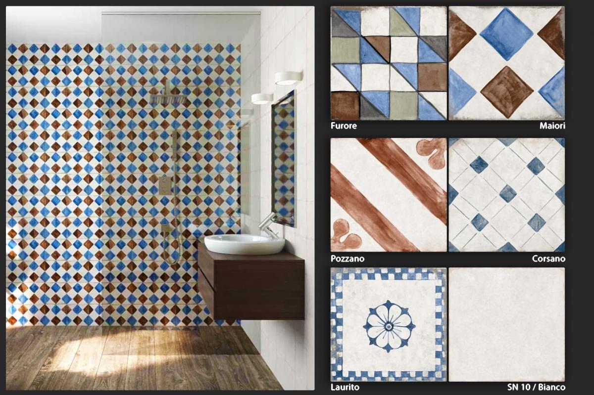 1950&1960 ve 1970 yılları seramiklerini anımsatan, dönemin zemin-duvar döşemelerinden ilham alan çeşitli desen ve renklerde porselen seramikler.