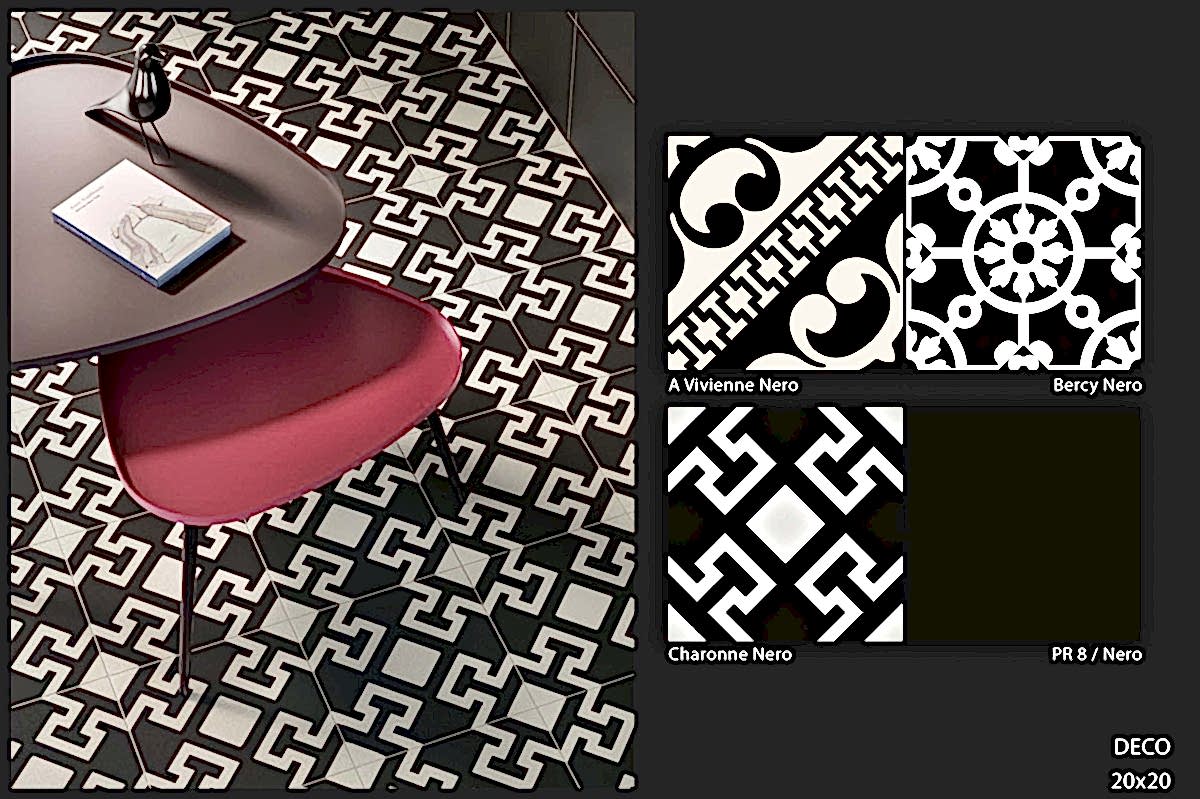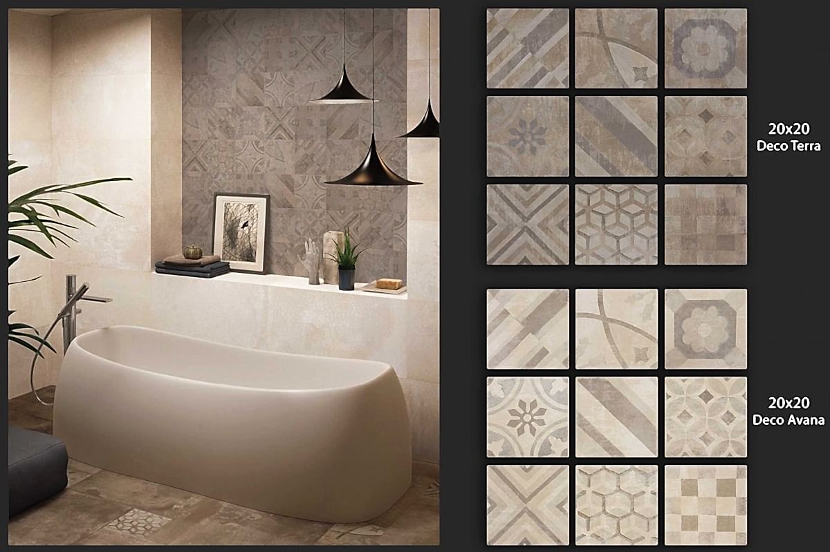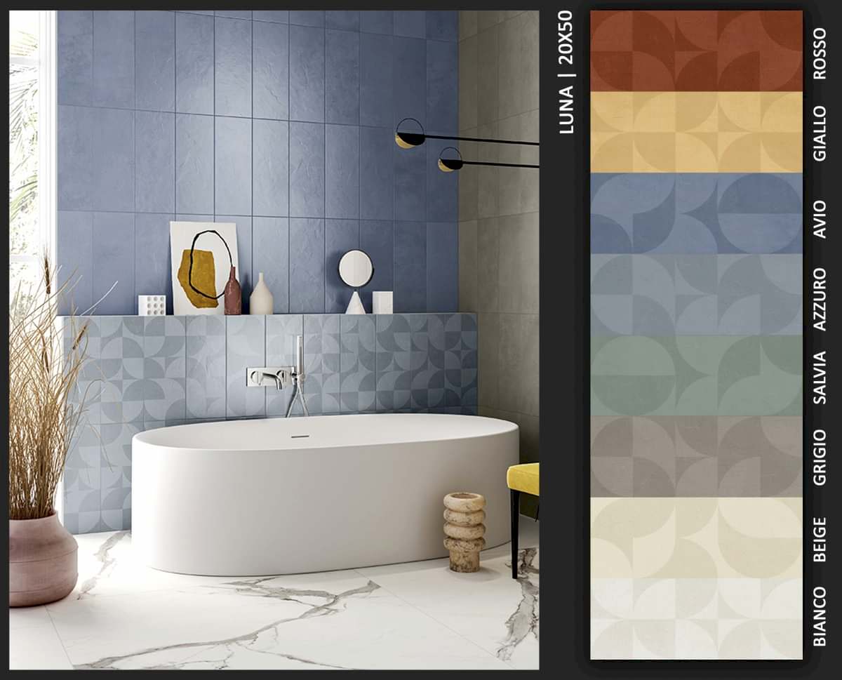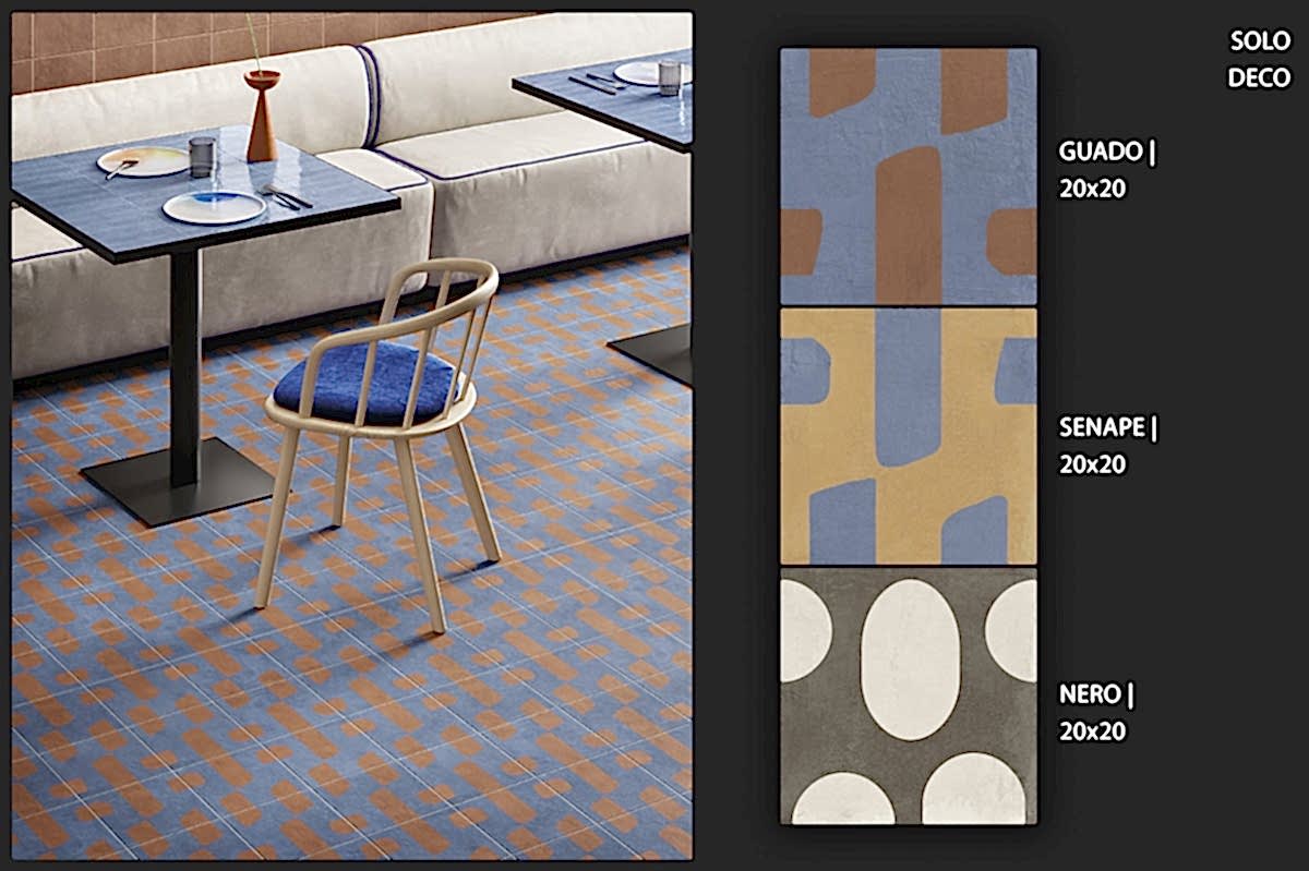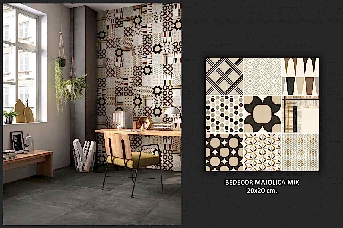 1950&1960 ve 1970 yılları seramiklerini anımsatan, dönemin zemin-duvar döşemelerinden ilham alan çeşitli desen ve renklerde porselen seramikler.